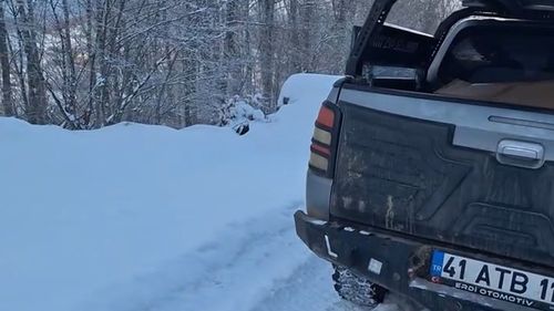 Sakarya'nın Geyve ilçesinde kar nedeniyle yiyecek bulmakta zorlanan yaban hayvanları için yem bırakan vatandaş, ormanlık alanda iki geyikle karşılaştı ve anları kaydetti.