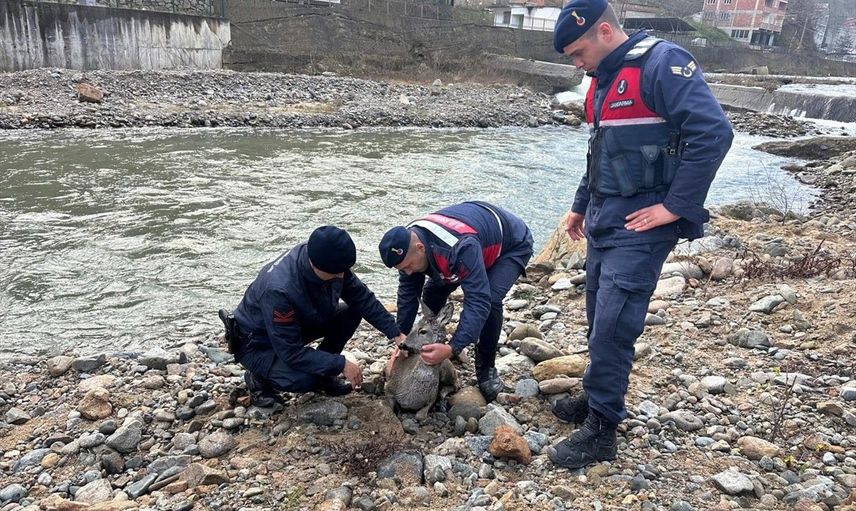 Giresun'un Yağlıdere ilçesinde dere yatağında mahsur kalan yaralı karaca jandarma ekiplerince kurtarıldı.