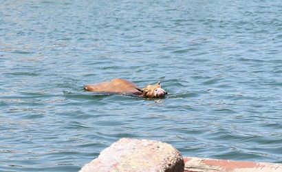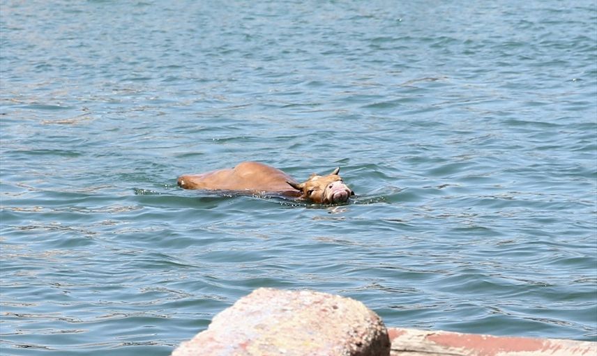 Açık denizde yaklaşık 20 dakika kalan kurbanlık, karaya çıkarak balıkçı barınağındaki bir kulübeye girdi. İhbar üzerine olay yerine gelen belediye ekipleri, kulübenin kapılarını kapatarak kurbanlığı sakinleştirmek için uyuşturucu iğne kullandı. Kurbanlık, daha sonra sahibi tarafından kamyonetin kasasına bindirildi.