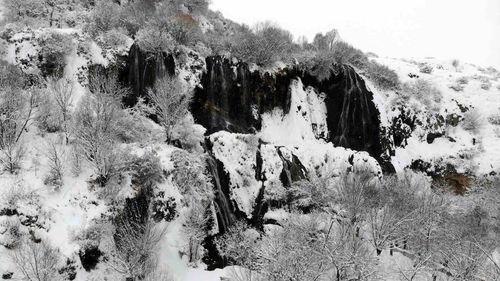 Girlevik Şelalesi kışta karla kaplandı, ziyaretçi ilgisi sürüyor