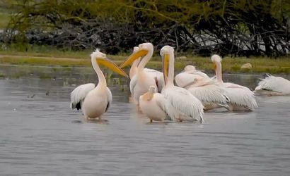 Göç eden pelikanlar, Bursa'nın İnegöl ilçesinde bulunan Boğazköy Barajı'nda mola verdi. Uzun yolculukları sırasında baraja inen pelikanlar, bölgede dinlenip beslenmeye devam ediyor.