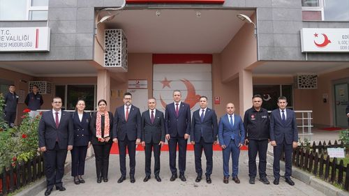 Göç İdaresi Başkanı Hüseyin Kök ile TBB Başkanı Erinç Sağkan, 4 Eylül protokolü kapsamında Edirne Valisi Yunus Sezer'i ziyaret ederek Edirne Geri Gönderme Merkezi'ni inceledi.