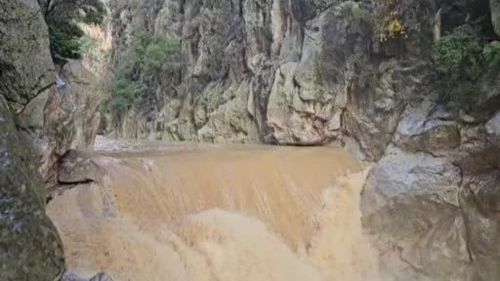 Muğla Menteşe'deki Gökbük Kanyonu'nda yoğun yağış sonrası su debisi yükseldi; şelale ve dere yataklarında etkileyici görüntüler oluştu, ziyaretçilere tedbir çağrısı yapıldı.
