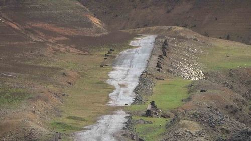Gökçe Barajı’nda su çekilince tarihi Çınarlı Hıyaban kalıntıları gün yüzüne çıktı