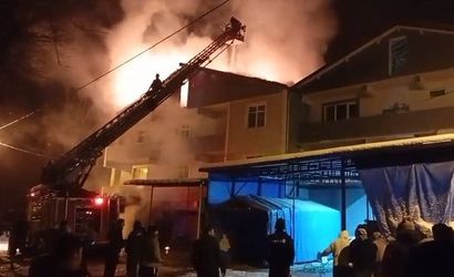 Zonguldak'ın Gökçebey ilçesi Veyisoğlu köyü İbrahimbeyoğlu Mahallesi'nde, Yılmaz Aydemir'e ait 3 katlı binanın çatı katında yangın çıktı.