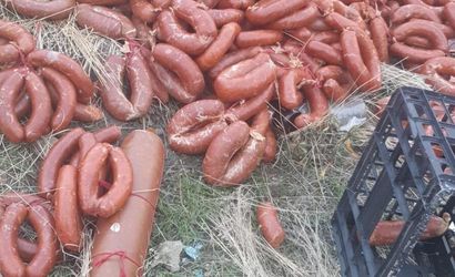 Bölgeden geçen bir vatandaş, gelişigüzel şekilde atılmış sucuk, kavurma ve salam görüntüleyerek durumu cep telefonuyla kaydetti ve yetkili kurumlara ihbarda bulundu.