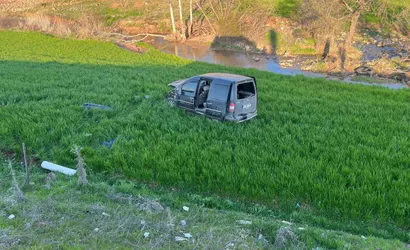 Gölbaşı'nda hafif ticari araç şarampole yuvarlandı