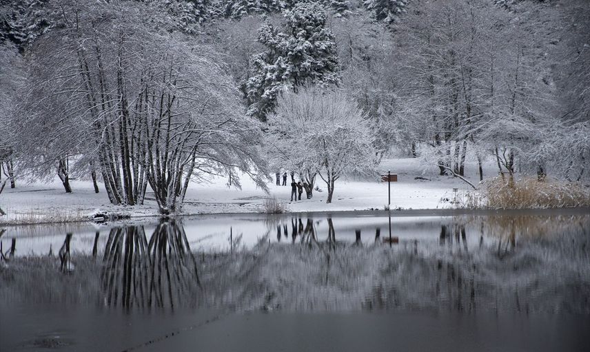 Bolu'nun doğal güzellikleri ile ünlü Gölcük Tabiat Parkı, etkili olan kar yağışının ardından beyaza büründü.