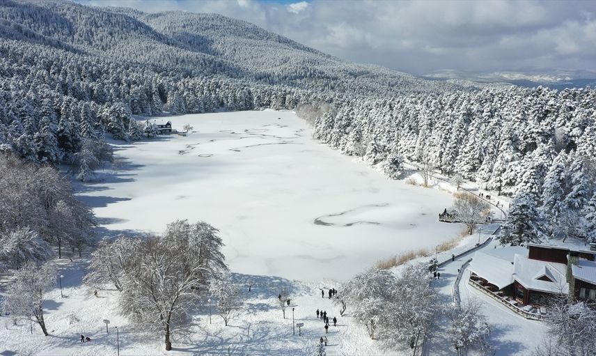 Gölcük Tabiat Parkı'nın karlı manzarası dron ile havadan da görüntülendi. Bu eşsiz manzaralar, bölgedeki doğal güzellikleri bir kez daha gözler önüne serdi.