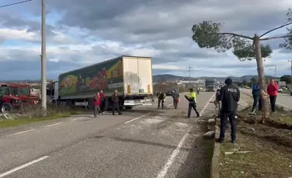Gönen-Bandırma yolunda tır şarampole savruldu