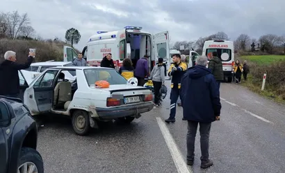 Gönen'de kavşakta iki otomobil çarpıştı: 6 kişi yaralandı