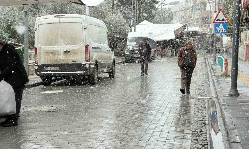 Manisa'nın Gördes ilçesinde öğle saatlerinden itibaren başlayan kar yağışı, ilçe genelinde etkili oldu. Sonbahar dönemini kurak geçiren ilçede yoğun yağışların ardından kaydedilen bu gelişme, yörede belirgin bir görsel değişime neden oldu.