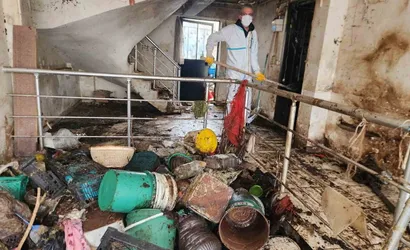 Evin tamamen boşaltılmasının ardından, biriken çöpler nedeniyle oluşabilecek bakteri, haşere ve kötü koku risklerini azaltmak amacıyla binanın içi ve çevresi detaylı şekilde ilaçlanarak dezenfekte edildi. Uygulama, çevre ve halk sağlığının korunmasına yönelik tedbirlerin bir parçası olarak yapıldı.