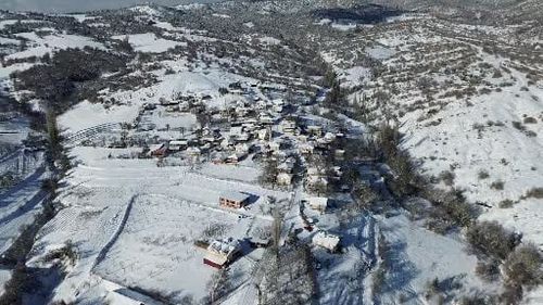 Bolu'nun Göynük ilçesindeki Karafakılar köyü yoğun kar sonrası beyaz örtüyle kaplandı; evler ve cami havadan görüntülerde kartpostallık manzara oluşturdu.