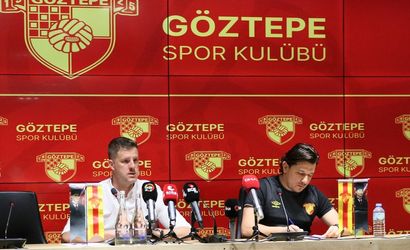 Göztepe Sportif Direktörü Ivan Mance (solda), Gürsel Aksel Stadyumu'nda düzenlediği basın toplantısında, sezon boyunca takıma destek veren taraftara teşekkür etti.