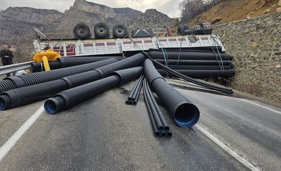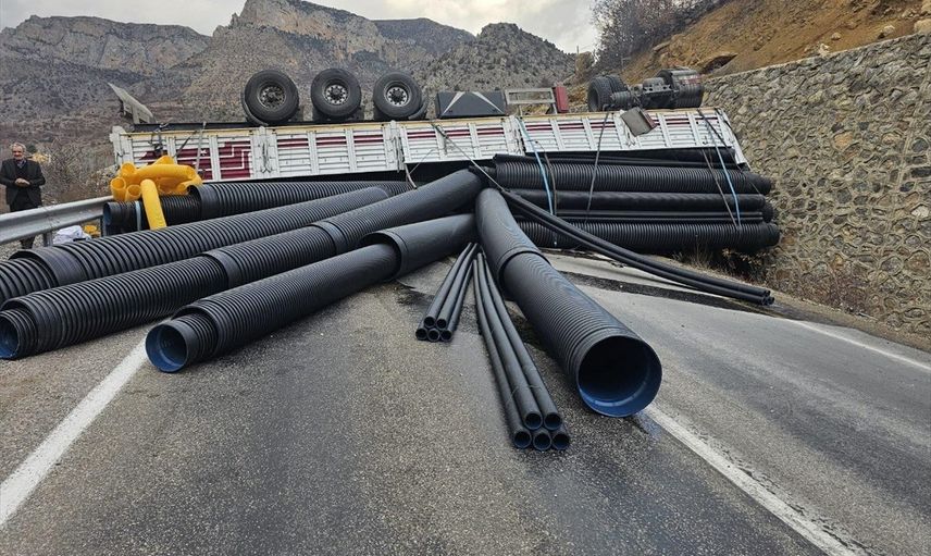 Alınan bilgilere göre, ilçenin Gülaçar köyü yakınlarında İlyas Ö. (23) idaresindeki 77 EF123 plakalı boru yüklü tır, kontrolden çıkarak yol kenarındaki istinat duvarına çarptı.