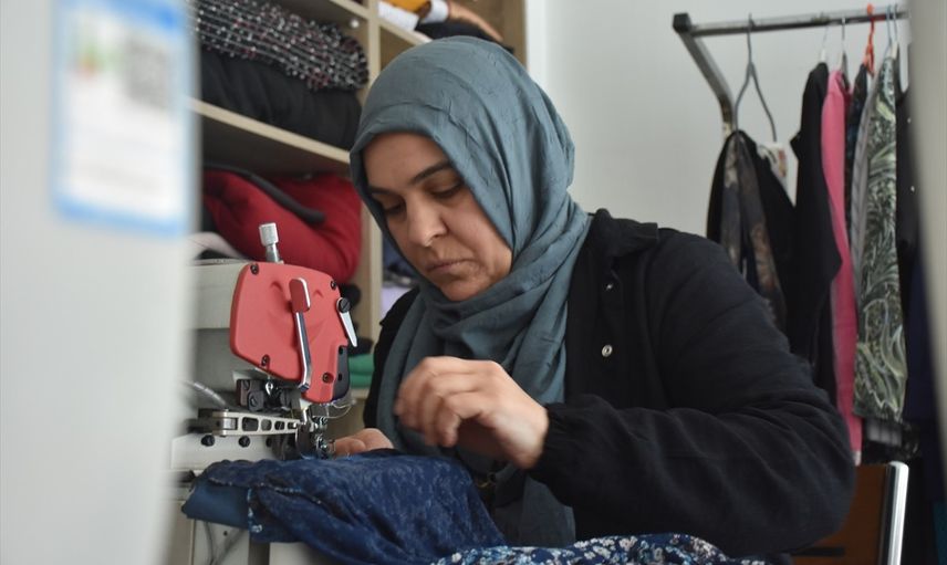 Gümüşhane'nin Torul ilçesinde düzenlenen kursta terziliği öğrenen kadın, açtığı atölyede çalışarak aile bütçesine katkı sağlıyor.