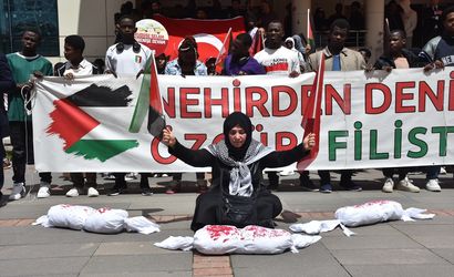 Türk ve Filistin bayrakları taşıyan grup adına konuşma yapan Faik Enes Akkaya, Gazze’de 18 aydır devam eden kuşatma altında Filistinlilerin yaşam mücadelesi verdiklerini belirtti. Akkaya, "Bu süre zarfında binlerce Filistinli, katil İsrail'in saldırıları sonucunda hayatını kaybetti, binlercesi yerinden edildi. Temel yaşam haklarından mahrum kalan Gazzeli çocuklar, dünyaya gözlerini açtıkları andan itibaren ölüm, yıkım ve yoksullukla yüz yüze kaldı," dedi.