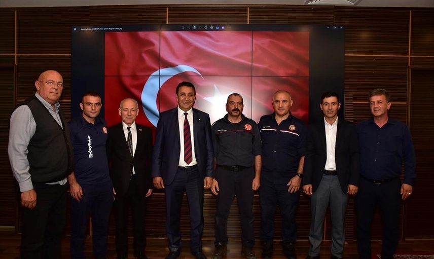 Engin Özyurt, bayrağın kutsal bir değer olduğunu belirterek, "Dere kenarından, yüksek duvarlar üzerinden bayrağımızı aldık. Kirlenmişti ama arkadaşlarımızla yıkayıp temizledik. Başkanımıza verdiği hediyeler için teşekkür ediyorum. Bu bayrağı itfaiyemizin en güzel köşesine asacağız," dedi.