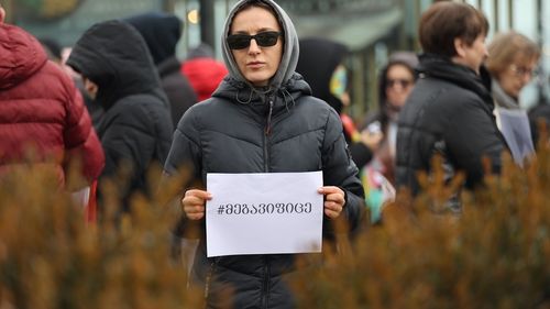 Gürcistan'da özel sektör çalışanları, AB katılım müzakerelerinin askıya alınmasını protesto etmek amacıyla 3 saatlik grev düzenledi.