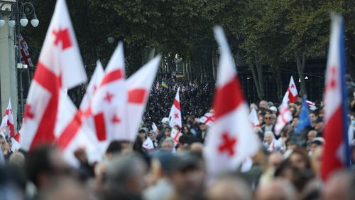 Tiflis'te muhalefetin düzenlediği gösteride bazı gruplar Cumhurbaşkanlığı Sarayı'na girmeye çalıştı; polis tazyikli su ve biber gazıyla müdahale etti. Protesto sürüyor.