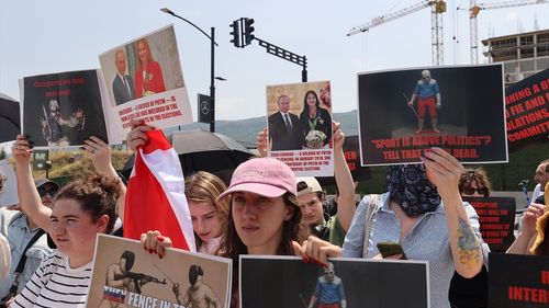 Gürcistan'da, Rus sporcuların Dünya Eskrim Şampiyonası'na katılması büyük protestolara yol açtı. Göstericiler, bu durumu kınadı.