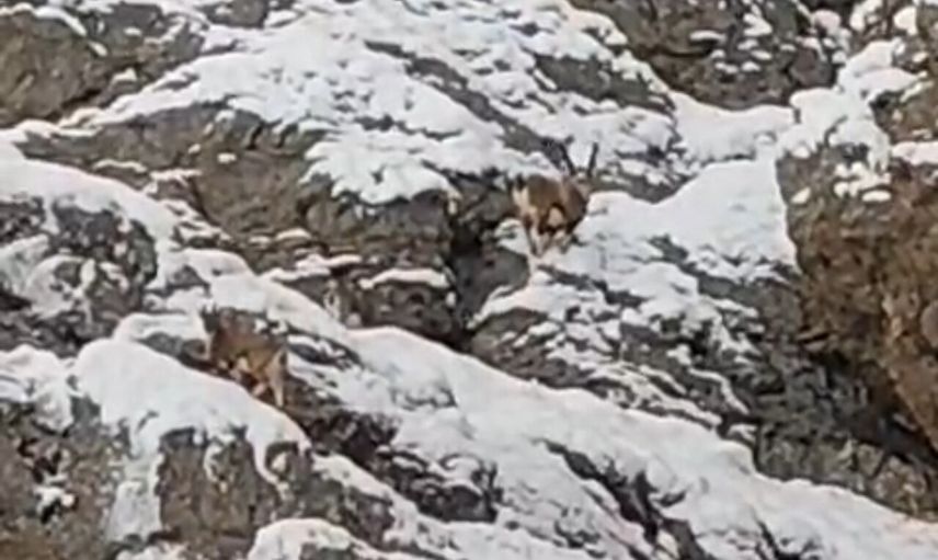 Güzeldere Geçidi'nin Karlı Yamaçlarında Dağ Keçileri Görüntülendi