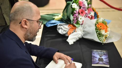 Hacı Yusuf Sayın, Kepez Kitap Fuarı'nda tanıttığı Zengibar’ın Gölgesi'nin fuar gelirini Kirişçiler köyündeki yapımı süren okula bağışladı.