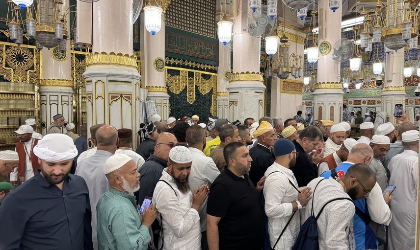 Mescid-i Nebevi'de ibadetlerine devam eden hacılar, mobil uygulama "Nusuk" üzerinden özel randevu alıp, Ravza-i Mutahhara'da namaz kılıyor, Hücre-i Saadet'e uğrayıp selamlama yapıyor ve Cennetü'l Baki'de dua ediyor.