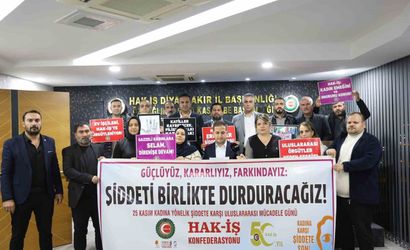 HAK-İŞ Konfederasyonu Diyarbakır İl Başkanı ve Öz Sağlık İş Sendikası Şube Başkanı Mehmet Aküzüm, HAK-İŞ'in 50 yıllık onurlu mücadelesinin birikimiyle bugün de kadına yönelik şiddetin karşısında dimdik durduğunu belirtti.