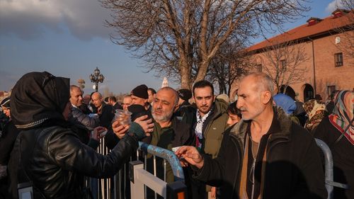 HAK-İŞ, Miraç Kandili'nde düzenlediği etkinlikte süt ve lokma tatlısı dağıttı, Filistin'e destek mesajı verdi.
