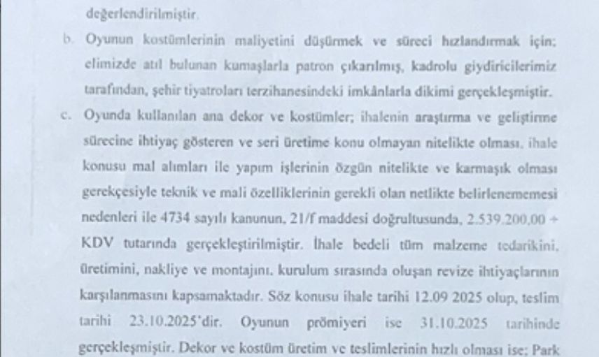 Yıldız ayrıca belediye içinde mali zorluklar yaşandığını, işçilerin maaş ve tazminat ödemelerinde sorunlar olduğuna dikkat çekerek, böyle bir yapıda yüksek bütçeli prodüksiyonların yapılmasını doğru bulmadıklarını ifade etti.