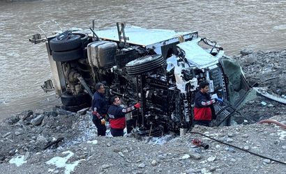 Hakkari'de şarampolden Zap Suyu kenarına devrilen çöp kamyonundaki 3 personel yaralandı.