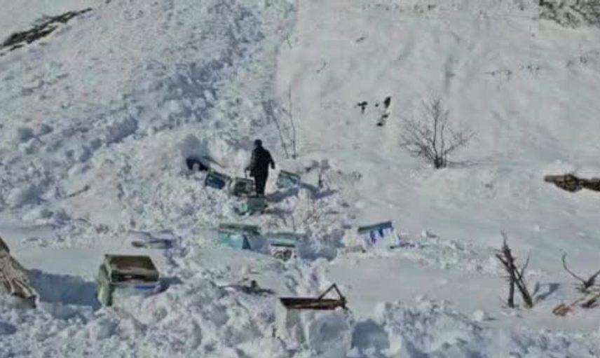 Hakkari’de Erziki Köprüsü yakınında 32 arı kovanı çığ altında kaldı