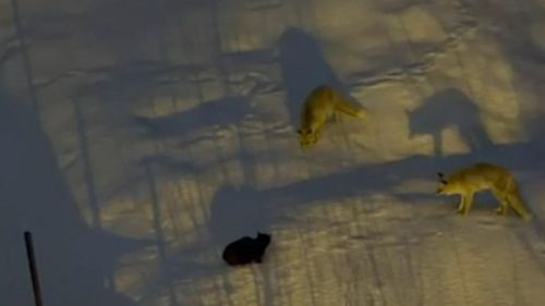 Hakkari'de iki tilki ile bir kedinin mezarlıkta mücadelesi cep telefonu kamerasına yansıdı