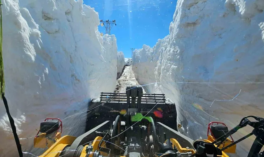Hakkari İl Özel İdaresi ekipleri, bazı noktalarda 5-6 metreye ulaşan kar birikimiyle karşı karşıya. Kepçelerin yetersiz kaldığı alanlarda ekskavatörler kullanılarak iş makinelerinin boyunu aşan kar yığınları arasında ilerleniyor; yollar, adeta kar tünellerini andıran kesitlerden geçirilerek açılıyor.