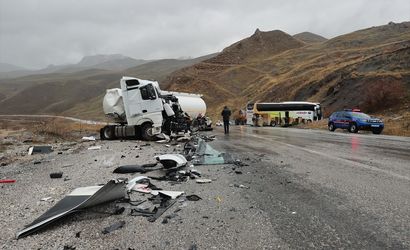 Hakkari'de otobüs ile yakıt tankerinin çarpışması sonucu 2'si ağır 8 kişi yaralandı.
