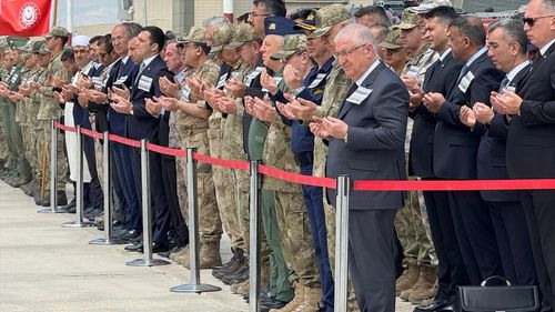 Pençe-Kilit Harekatı'nda şehit olan 6 asker için Hakkari'de düzenlenen törene üst düzey yetkililer katıldı.
