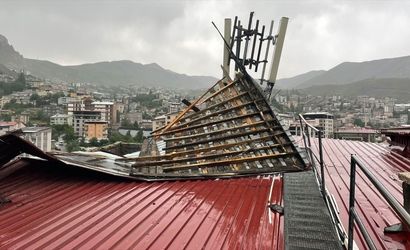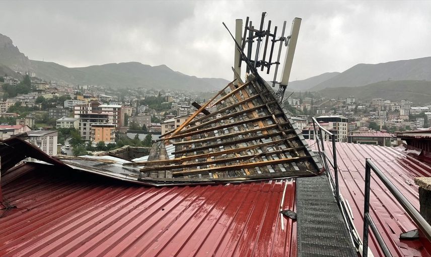 Hakkari'de, şiddetli rüzgar nedeniyle bir binanın çatısı zarar gördü. Cumhuriyet Caddesi üzerinde bulunan 6 katlı binanın çatısının bir bölümü, rüzgarın etkisiyle söküldü.