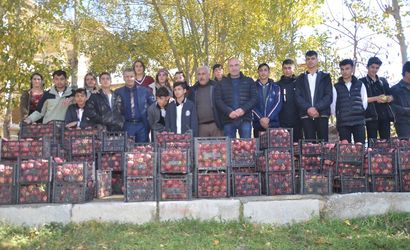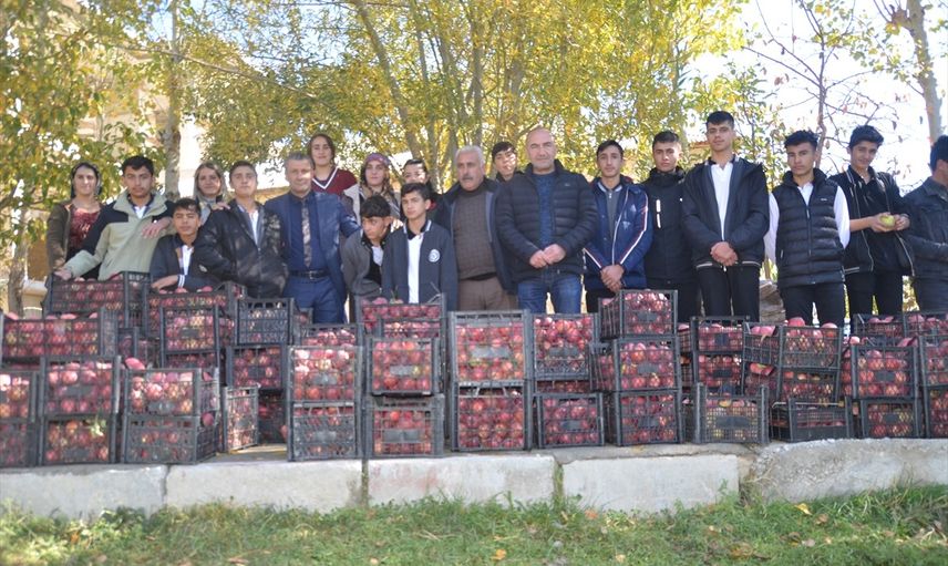 Okul Müdürü Enver Yaşar ve Tarım ve Orman İlçe Müdürü Mehmet Emin Yiğit'in eşliğinde Bulgurlu köyünde gerçekleştirilen hasat etkinliğinde, öğrenciler elma ağaçlarından meyve topladı.