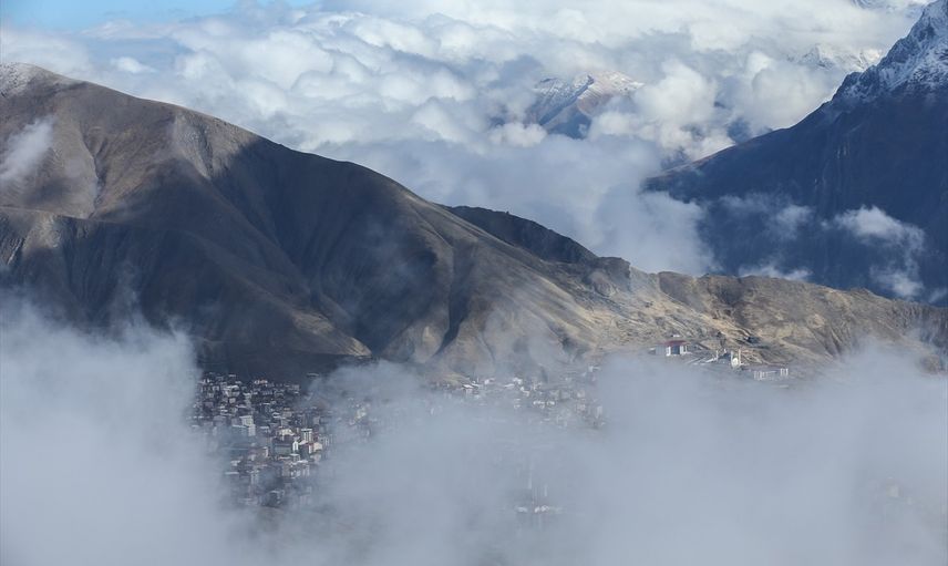 Hakkari'de şehrin üstünde ve yüksek kesimlerde sis bulutları oluştu.