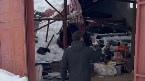 Hakkâri Derecik Gelişen köyünde yoğun kar nedeniyle ahır çatısı çöktü