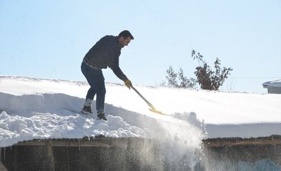 Hakkari'nin Yüksekova ilçesinde vatandaşlar, yoğun kar yağışı sonucu ev ve iş yerlerinin çatılarında biriken karı temizledi.