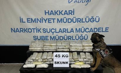 Hakkari'nin Yüksekova ilçesinde tırın dorsesinde, narkotik dedektör köpekle yapılan aramada, 45 kilogram skunk ve 16 kilo 2 gram sentetik uyuşturucu bulundu.