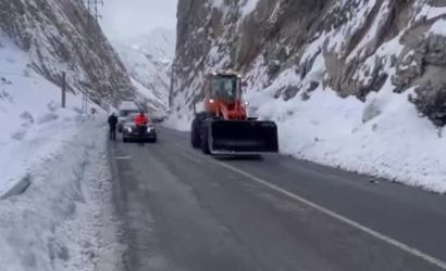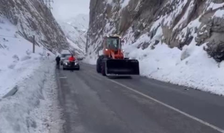 Haber verilmesi üzerine bölgeye sevk edilen Karayolları ekipleri, iş makineleriyle başlattıkları çalışma sonucu yoldaki kar yığınlarını temizleyerek yolu yeniden trafiğe açtı.