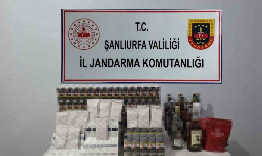 Şanlıurfa'nın merkez Haliliye ilçesi ile Viranşehir ilçesinde jandarma ekipleri tarafından yürütülen bir haftalık çalışmalarda, gümrük kaçağı alkol, sigara ve çeşitli malzemeler ele geçirildi.