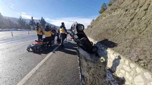 Hanönü'de buzlanma nedeniyle otomobil takla attı: 4 yaralı