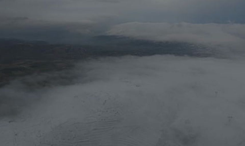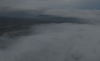 Harput'ta aynı rakımda kar, sis ve karsız alanlar dron görüntüsünde