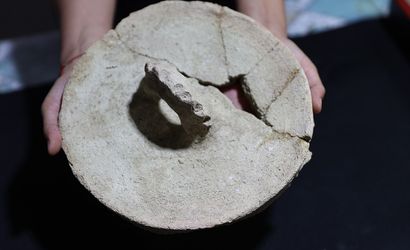 Kazı ekibinin medrese bölümünde tespit ettiği buluntu, yaklaşık 40 santimetre çapında ve pişmiş topraktan imal edilmiş. Eserin üzerinde sanki baklava dilimi desenleri kazınmış halde olduğu ve günümüzden yaklaşık 800 yıl öncesine tarihlenebileceği değerlendiriliyor. Buluntu, tonozlu odaların bulunduğu alanda tandırların yanı başında ele geçirildi.