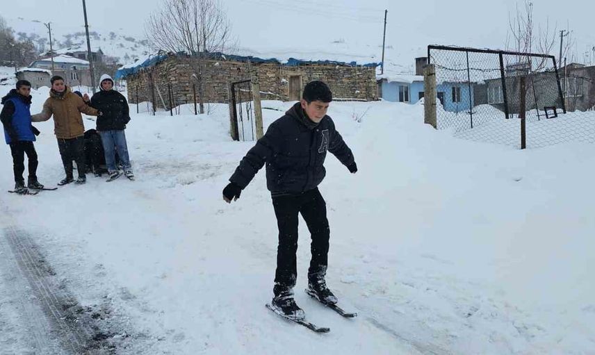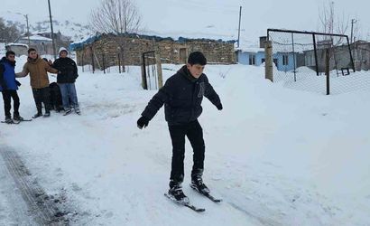 Muş’un Hasköy ilçesinde etkili olan kar yağışı, köy çocuklarının yaratıcı oyunlarına zemin hazırladı. Dağdibi köyü sakinleri poşet, naylon, kızak ve kendi el becerileriyle yaptıkları patenlerle yokuşlu köy yollarını adeta küçük bir pist haline getirdi.